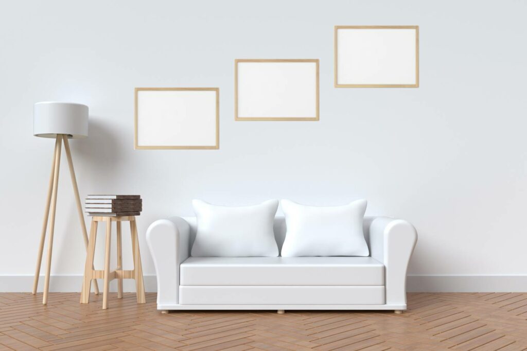 Prima di iniziare il processo di appendimento vero e proprio, è bene disporre i quadri sul pavimento o su un grande tavolo. Questo vi aiuterà a capire quale sia l’appendimento più adatto a voi e alle vostre foto.