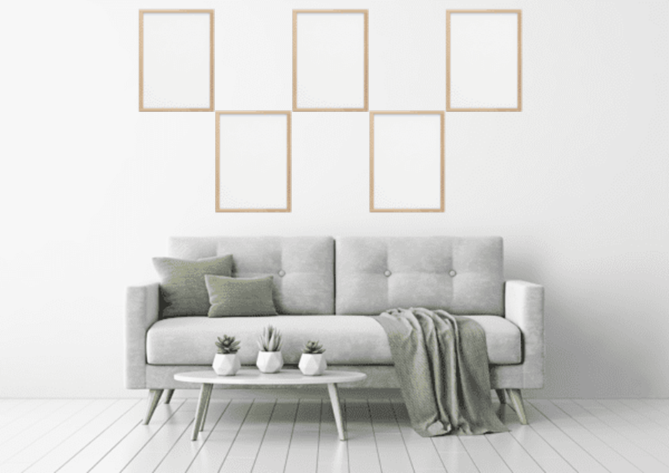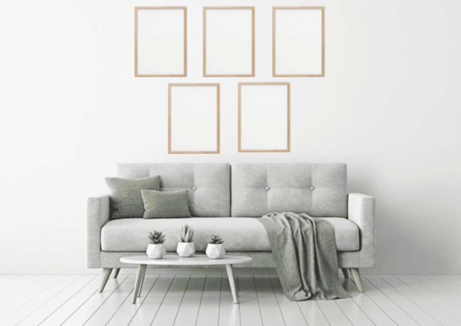 Con 5 quadri, le possibilità di appendere sembrano quasi illimitate. Da un’appensione a griglia a un’appensione ai bordi a un’appensione a Pietroburgo, sembrano esserci molte opzioni diverse per l’appensione. Avete qualche consiglio da darmi su come appendere le cornici senza forare la parete?